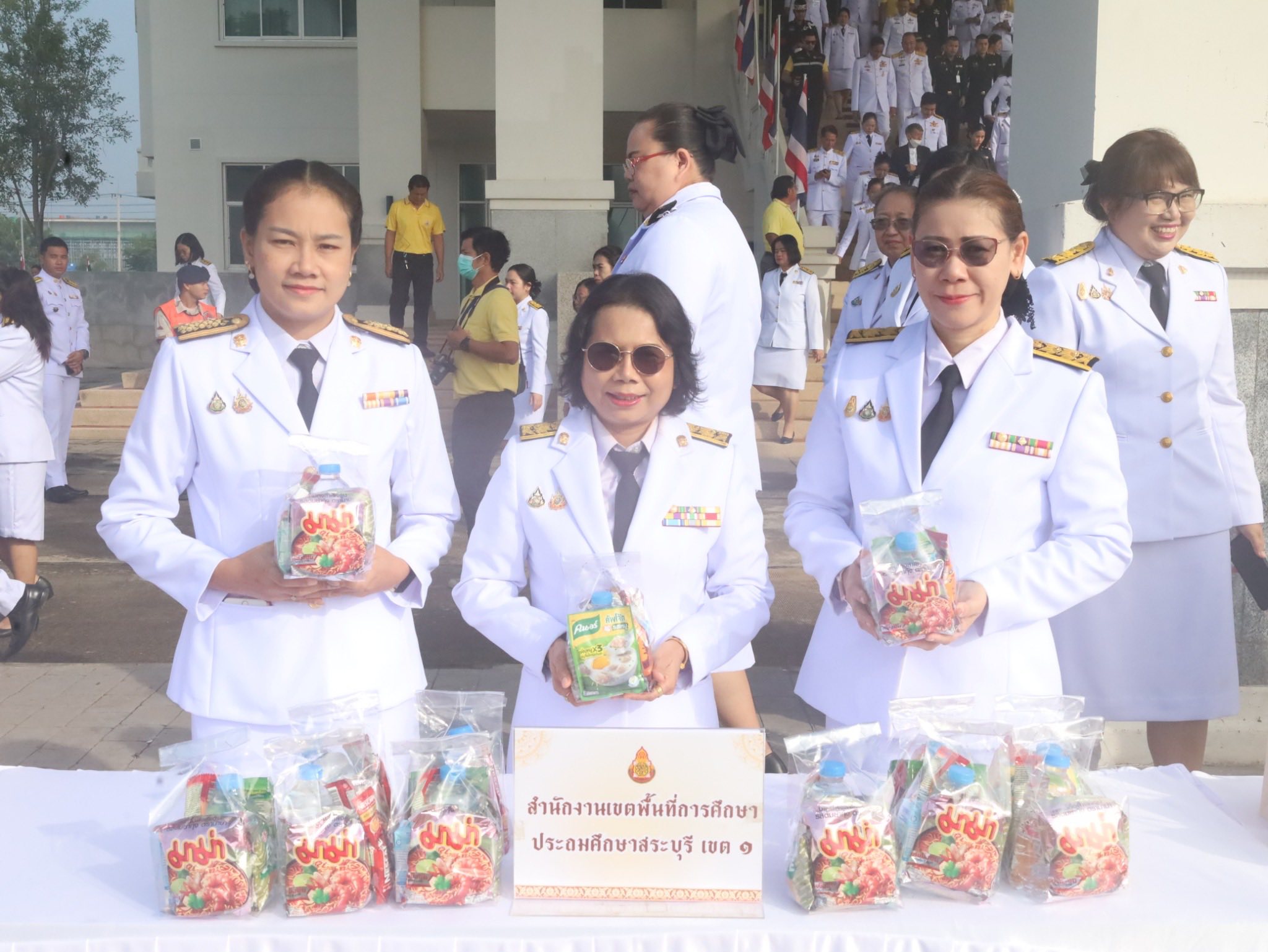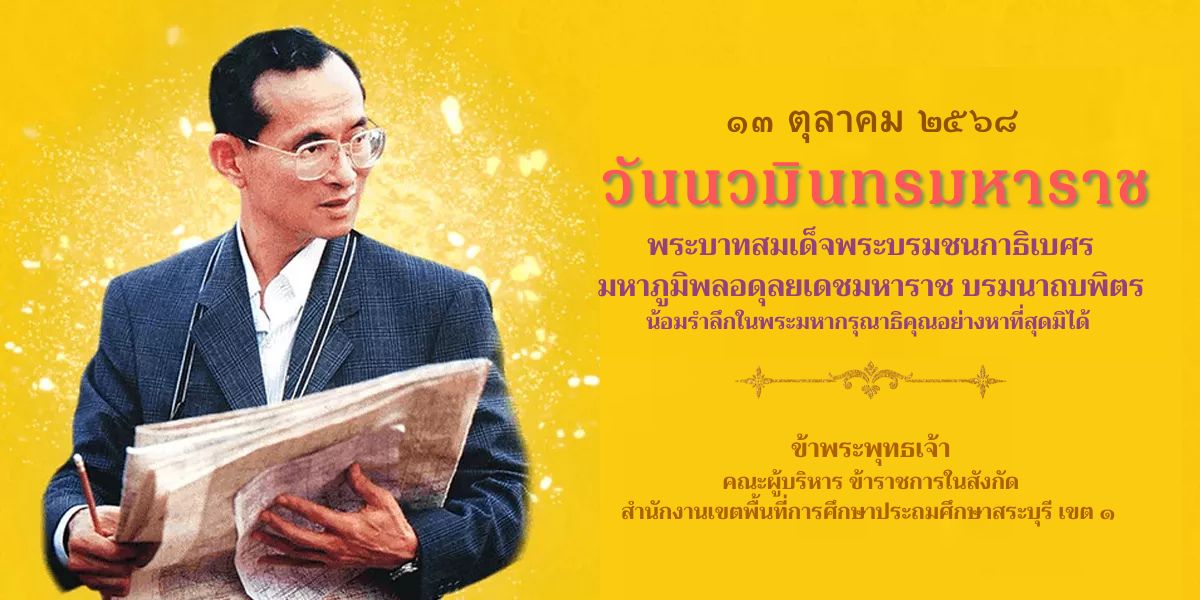 สพป.สระบุรี เขต 1 ร่วมพิธีเจริญพระพุทธมนต์ ทำบุญตักบาตรถวายพระราชกุศล และวางพวงมาลาเนื่องในวันนวมินทรมหาราช