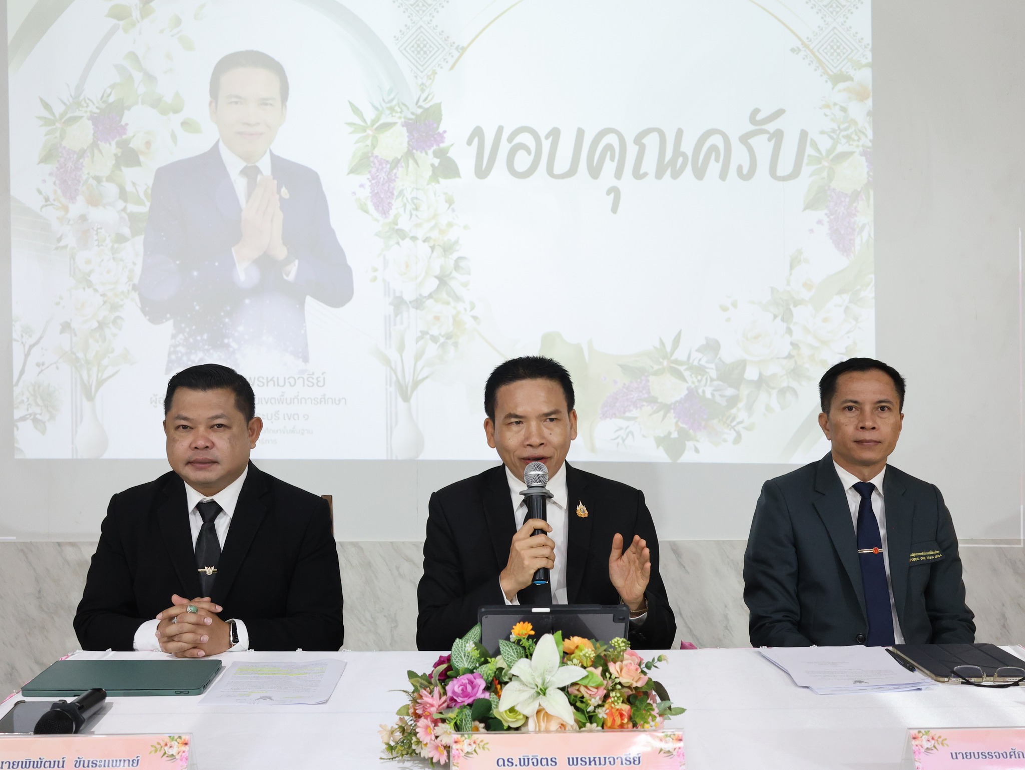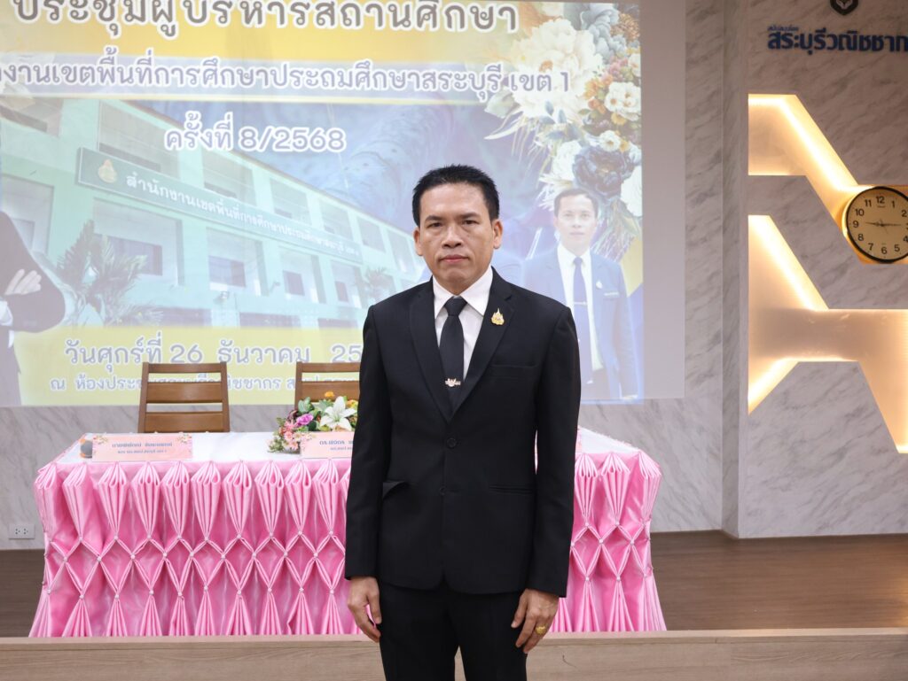 26 ธันวาคม 2568 ดร.พิจิตร พรหมจารีย์ ผอ.สพป.สระบุรี เขต 1 เป็นประธานการประชุมผู้บริหารสถานศึกษา ครั้งที่ 8/2568 พร้อมทั้งมอบนโยบายของกระทรวงศึกษาธิการและสำนักงานคณะกรรมการการศึกษาขั้นพื้นฐานเพื่อให้สถานศึกษาได้ดำเนินการในการพัฒนาการศึกษาของสพป.สระบุรี เขต 1 ในการนี้ นายพิพัฒน์ ขันธะแพทย์ และนายบรรจงศักดิ์ งามประเสริฐ รอง ผอ.สพป.สระบุรี เขต 1 ร่วมมอบนโยบายการปฏิบัติงาน โดยมีผู้อำนวยการกลุ่ม ผู้อำนวยการหน่วย และผู้บริหารสถานศึกษา เข้าร่วมประชุมฯ และรับฟังนโยบายจากกลุ่มงานต่างๆ พร้อมสรุปผลการดำเนินงานปี 2568 ที่ผ่านมา ณ ห้องประชุมสระบุรีวณิชชากร สพป.สระบุรี เขต 1