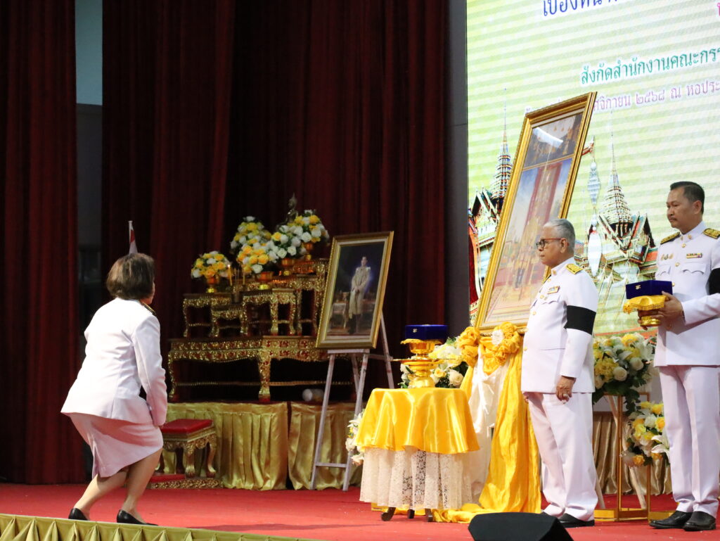 สพป.สระบุรี เขต 1 พิธีรับพระราชทานเครื่องราชอิสริยาภรณ์ ชั้นสายสะพาย ประจำปี 2567 หน้าพระบรมฉายาลักษณ์พระบาทสมเด็จพระเจ้าอยู่หัว สังกัดสำนักงานคณะกรรมการการศึกษาขั้นพื้นฐาน จังหวัดสระบุรี
